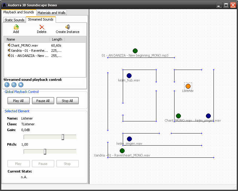 Im Anhang ist ein aktuellen Bildschirmfoto meiner "Soundscape" Demo-Anwendung.