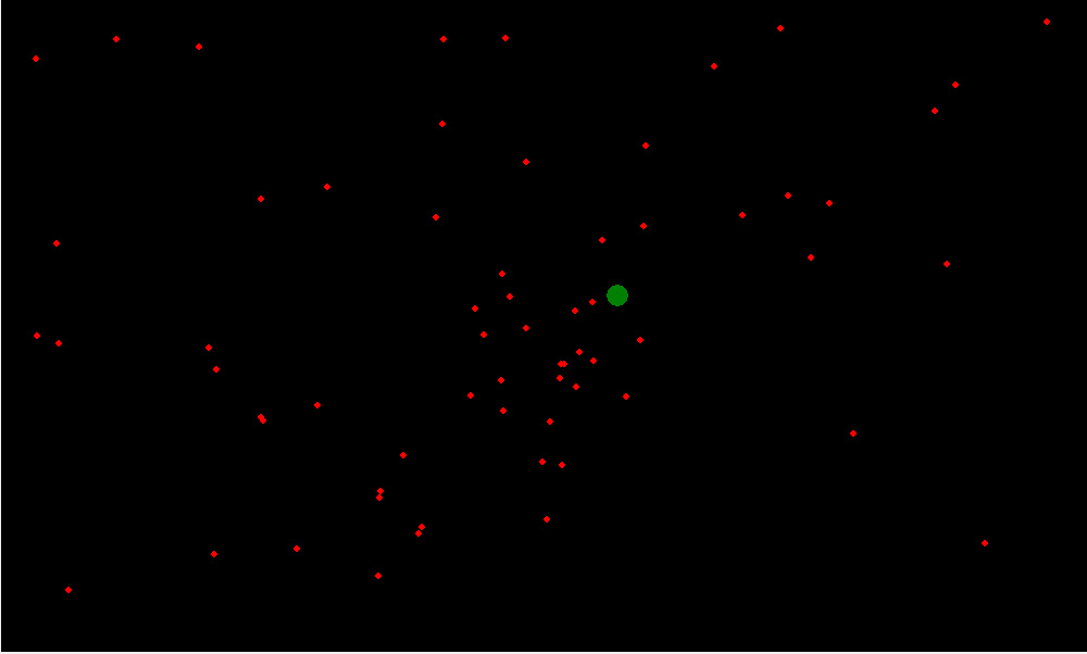 Die Dunkelgrüne Kugel wird mit der Maus gesteuert, wenn sie eine der roten Kugeln berührt, endet das Spiel. Wenn der Spieler lange genug durchhält, kommt das nächste Level. Das Spiel wird durch einen Doppelklick auf die Spielfläche (PaintBox) gestartet. Auch nach dem Verlieren wieder. Feinde gibt es auch in anderen Farben, dann mit anderen Eigenschaften: rot: fliegt geradeaus. hellgrün: prallt von Wänden (=dem Rand des Spielfelds) ab. Verringert dabei seine größe bzw verschwindet, wenn es zu klein wird. hellblau: prallt von Wänden ab. Zielt dabei auf den Spieler. Ansonsten genauso. gelb: zerspringt zu mehreren Roten, wenn es das Spielfeld verlässt (je größer es war, desto mehr). blau: Verfolgt den Spieler, indem es die Bewegungsrichtung langsam dreht (dreht umso schneller, je größer es ist). violett: “verfolgt” den Spieler, indem es in seine Richtung beschleunigt. grau: bewegt sich auf und ab, hin und her oder in Kreisen.