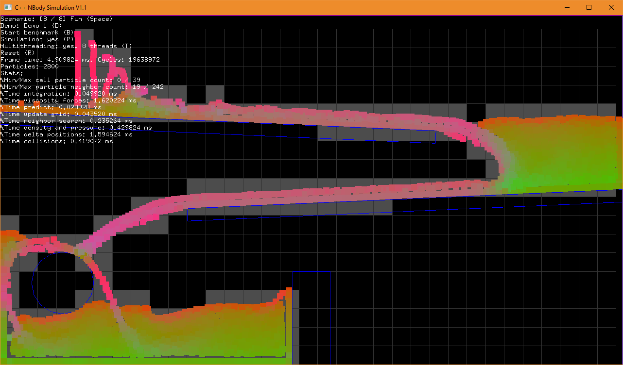 Das ganze ist daher eine in C++/OpenGL implementierte 2D Flüssigkeitssimulation mit eingebauter Benchmark-Funktion.