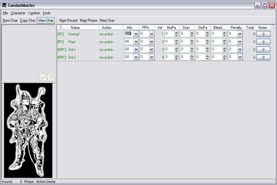 Angedacht sind in nächster Zeit: - Ausrechnen des Schadens (nicht anhand der Tabellen, das hab ich aufgegeben, sondern anhand eines Berechnungssystems aus dem http://www.guildcompanion.com/ - Auswerten von kritischen Schäden (hierzu muss ein Scripting-system her)