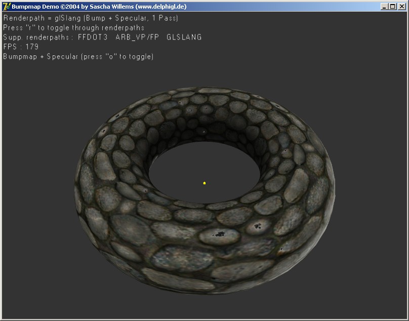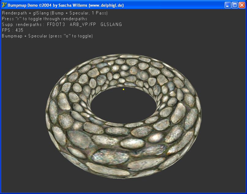 Schaut recht gut aus und läuft auf meinem Zweitrechner mit GF4-Ti4400 mit 320 FpS sogar noch recht schnell. Ist aber irgendwie fast schon schmerzhaft zu sehen dass glSlang auf ner modernen Karte ein gütes Stück langsamer ist als die RegisterCombiner (ist im Endeffekt wohl auf die Tatsache zurückzuführen dass RCs weniger flexibel sind).