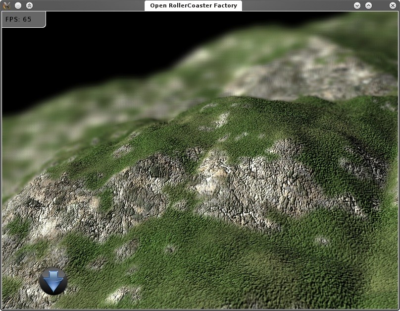 Der OpenGL-Renderer rendert bisher auch einfach nur stumpf eine Terrain-Heightmap mit verschiedenen Texturleveln. Die Texturen stehen dabei allesamt mitsamt Bumpmap in einer einzigen Textur, sodass man 8 Layer in einer Landschaft unterbringen kann. Das Bild unten ist z.b. auf einer 2048x2048-Heightmap entstanden, wobei jeder einzelne Terrainblock 0.2x0.2 Meter groß ist. Im Vordergrund wird das auch mit dem Detailgrad gerendert, bis auf eine Distanz von etwa 120 Metern wird mit einem Viertel dieser Genauigkeit gerendert, danach mit einem Sechzehntel. Dabei gehen aber keine Normalen oder Texturinformationen verloren, da die ganze Map in einer Textur gespeichert und dann vom Vertexshader behandelt wird. Das Ergebnis ist ein meiner Meinung nach extrem detailliertes Terrain, das auf meiner Geforce 9800 GT ohne Posteffects über 100FPS kriegen kann (wenn man den sleep abschaltet).