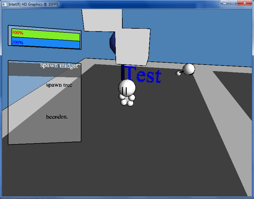 Ich progge hier so vor mich hin, jetzt habe ich in die GUI mal einen simplen Lebensbalken eingefügt, als nächstes muss ich Schriften einbinden, dann mache ich eine Menüklasse, in der jeder Menüpunkt einfach einen Scriptbefehl ausführen kann. Das kann dann eigentlich alles sein, also auch zB ein ganzes Script auszuführen.