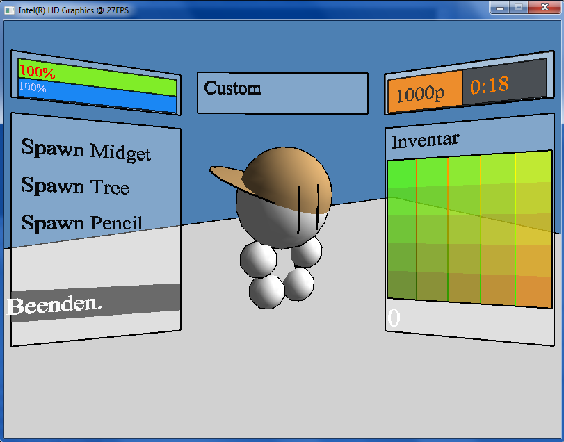 Im Speicher und in der GUI exestiert jetzt ein Inventar, jetzt fehlen nur noch Gegenstände dazu, aber das wird wohl noch etwas warten müssen; Bald sollen die ersten generierten Straßennetze verlegt werden...!
