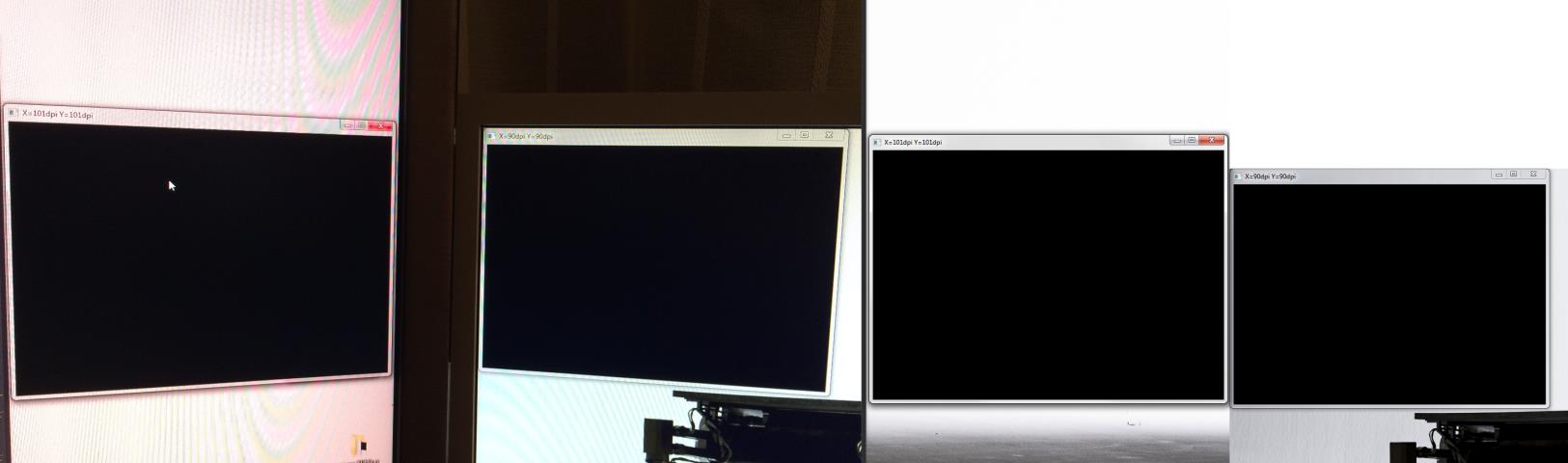 Links sieht man ein Foto von mein Handy, damit man sieht wie man die DPI korrektur im Code wahr nimmt und rechts sieht man ein Screenshot vom Desktop. Durch die korrektur sehen beide Fenster gleich groß aus aber eigentlich ist das Fenster auf dem 30" größer als das auf dem 22" Monitor. Bei den beiden Monitoren ist der Unterschied nicht wirklich dramatisch aber auf den 15" 4k Laptop macht es kein Spaß nicht skalierte Texte mit Schriftgröße 12 zu lesen. Windows 8 und 10 User sind in die Zeit gekommen wo sich so langsam die 4 und 5k Displays verbreiten und das OS ist bereit dafür aber die meisten Programme sind nicht skalierungsfähig programmiert. Im Code oben sieht man eine Division mit 96, dies ist die übliche Referenz DPI bei der Schriften und früher UI konzeptioniert wurde. Die Zahl rührt von den Röhrenmonitoren und den bis jetzt noch normalen TFT. Die moderneren TFT bzw. größere Monitore haben andere DPI Werte, wie man an mein 30" Monitor erkennen kann(siehe Foto Titelbar vom Fenster).